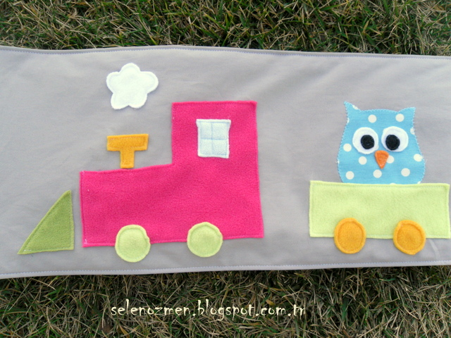 Anaokulu müdiresi olan bir müşterim, okulun tiyatro salonundaki cama yapılan lale boyamasından memnun olmadığını, pratik bir şekilde bunu kapatmak istediğini söyledi. Eğlenceli ve hikayesi olan bir deseni kumaşa aplike yapıp cırt bantla cama tutturmak istiyordu..
